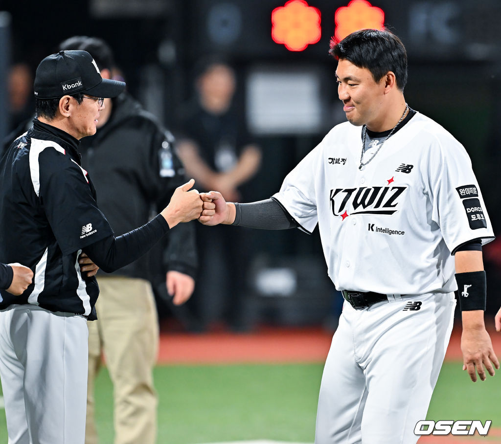 경기를 마치고 KT 이강철 감독과 장성우가 하이파이브를 하고 있다. 2026.04.18 / rumi@osen.co.kr