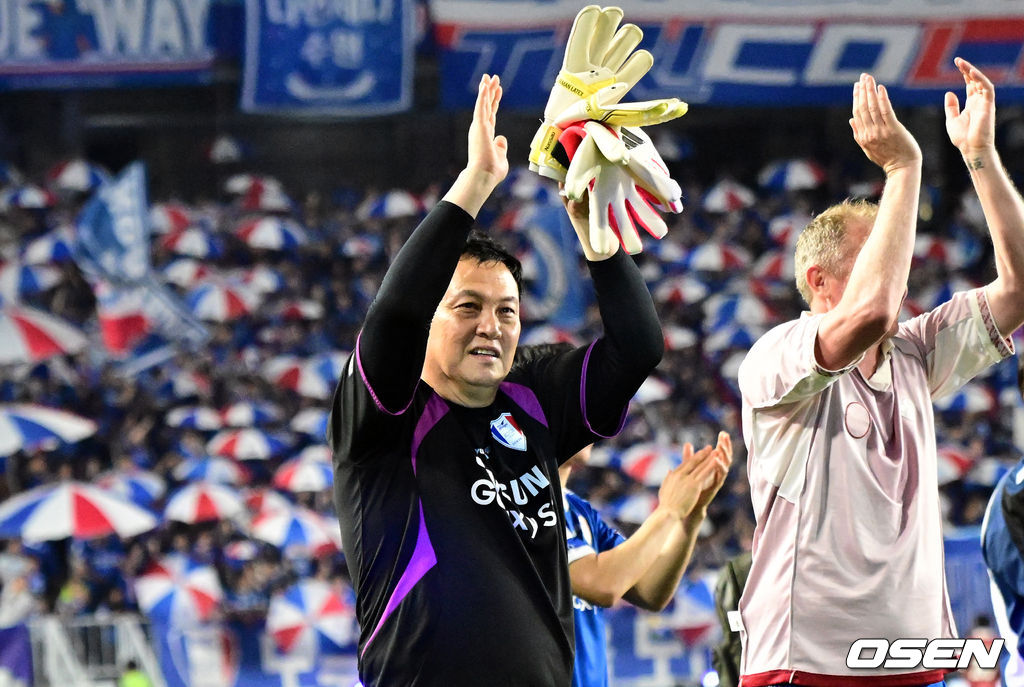 수원삼성 이운재가 관중들에게 인사를 하고 있다. 2026.04.19 /cej@osen.co.kr