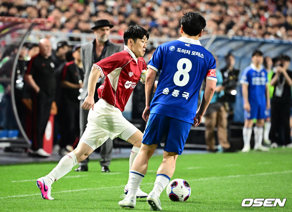 '해버지' 박지성(45)이 다시 수원월드컵경기장 잔디를 밟았다. 하지만 승자는 홈팬들의 웅장한 응원에 힘입은 수원 삼성 레전드 팀이었다.