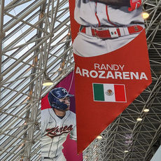 WBC 대표 선수로 도쿄돔에 걸린 이정후의 사진