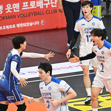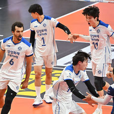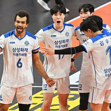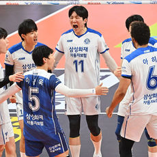 2026.01.17 15: 15아히 서브 득점 기뻐하는 삼성화재 선수들