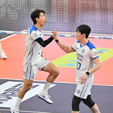 2026.01.17 15: 15블로킹 득점 기뻐하는 이윤수와 고준용 감독대행
