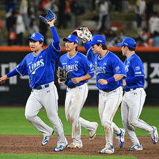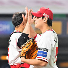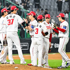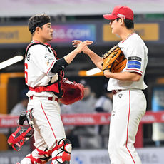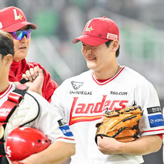 조병현,'이숭용 감독에게 축하받으며 활짝'