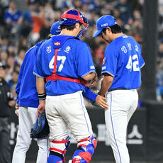 2026.04.15 20: 19마운드 내려가며 인사하는 김진욱