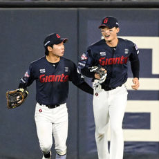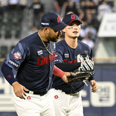 2026.04.15 20: 56멋진 캐치 윤동희,'김원중과 하이파이브'