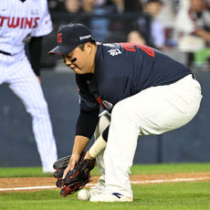 2026.04.16 21: 18오지환 번트 타구 놓치는 한동희