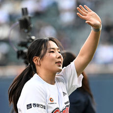 2026.04.17 19: 10여자야구 국가대표 박주아,'마운드 위 완벽 시구'