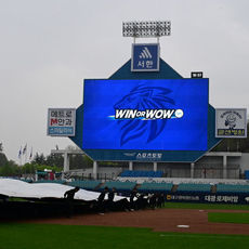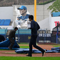 2026.04.17 17: 53굵어진 빗방울에 대구삼성라이온즈파크 방수포 설치