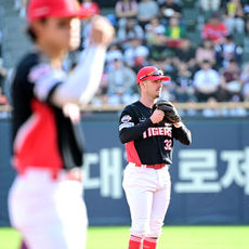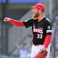 기뻐하는 KIA 선발 애덤 올러, '위기는 병살로'