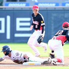 두산 박찬호, '친정 KIA 내야 흔드는 2루 도루'