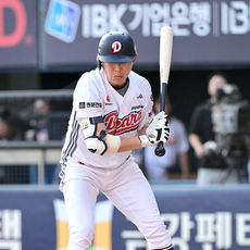정수빈, 'KIA 선발 애덤 올러에 몸 맞는 공'