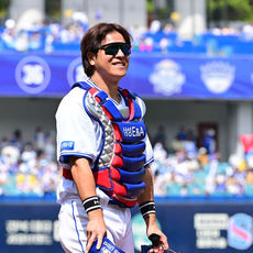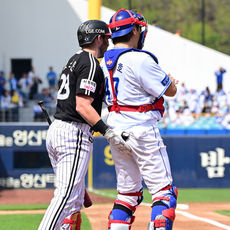 2026.04.18 19: 42키키 하음, '강민호와 주먹 인사'