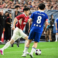 송종국 수비 속 드리블 하는 박지성