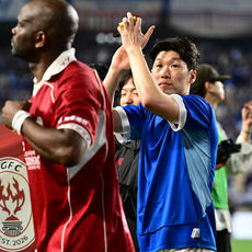관중들에게 인사하는 수원삼성