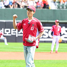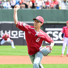 2026.04.20 16: 38고향 부산 찾은 정우, 시구를 마치고