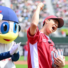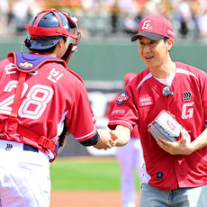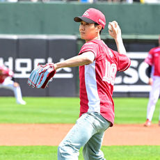 2026.04.20 16: 37정우, 고향 부산 마운드 올라 미소