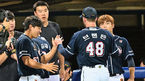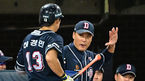 [OSEN=포항, 이석우 기자] 6일 포항야구장에서 2023 신한은행 SOL KBO리그 삼성 라이온즈와 두산 베어스의 경기가 열렸다. 두산 베어스 이승엽 감독이 9회초 좌월 솔로 홈런을 친 허경민을 반기고 있다. 2023.07.06 / foto0307@osen.co.kr