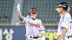 [OSEN=잠실, 박준형 기자] 6일 오후 서울 잠실구장에서 2023 신한은행 SOL KBO리그 LG 트윈스와 KT 위즈의 경기가 진행됐다.5회말 2사 3루 LG 문성주의 역전 1타점 적시타때 3루 주자 신민재가 홈을 밟은 뒤 기뻐하고 있다. 2023.07.06 / soul101