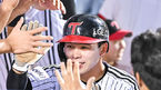 [OSEN=잠실, 박준형 기자] 6일 오후 서울 잠실구장에서 2023 신한은행 SOL KBO리그 LG 트윈스와 KT 위즈의 경기가 진행됐다.5회말 1사 2,3루 LG 신민재가 1타점 적시타를 날리고 세리머니를 하고 있다. 2023.07.06 / soul1014@osen.co.kr