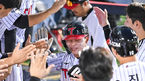 [OSEN=잠실, 박준형 기자] 6일 오후 서울 잠실구장에서 2023 신한은행 SOL KBO리그 LG 트윈스와 KT 위즈의 경기가 진행됐다.5회말 2사 2루 LG 김현수의 1타점 적시타때 2루 주자 문성주가 득점 후 동료들의 축하를 받고 있다. 2023.07.06 / sou