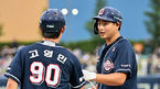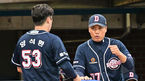 [OSEN=포항, 이석우 기자] 6일 포항야구장에서 2023 신한은행 SOL KBO리그 삼성 라이온즈와 두산 베어스의 경기가 열렸다. 두산 베어스 이승엽 감독이 3회초 2사 1,2루 홍성호의 1타점 적시타 때 득점을 올린 양석환과 하이파이브를 하