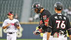 [OSEN=잠실, 박준형 기자] 6일 오후 서울 잠실구장에서 2023 신한은행 SOL KBO리그 LG 트윈스와 KT 위즈의 경기가 진행됐다.4회초 1사 2,3루 KT 박병호의 선취 1타점 적시타때 홈을 밟은 3루 주자 김상수가 이강철 감독의 축하를 받고 있다