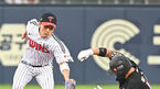 [OSEN=포항, 이석우 기자] 6일 포항야구장에서 2023 신한은행 SOL KBO리그 삼성 라이온즈와 두산 베어스의 경기가 열렸다. 두산 베어스 강승호가 3회초 2사 1,2루 1타점 적시타를 치고 있다. 2023.07.06 / foto0307@osen.co.kr