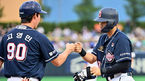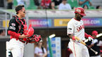 [OSEN=포항, 이석우 기자] 6일 포항야구장에서 2023 신한은행 SOL KBO리그 삼성 라이온즈와 두산 베어스의 경기가 열렸다. 두산 베어스 이승엽 감독이 3회초 2사 1,2루 강승호의 1타점 적시타 때 득점을 올린 로하스와 하이파이브를 하