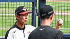 [OSEN=잠실, 박준형 기자] 6일 오후 서울 잠실구장에서 2023 신한은행 SOL KBO리그 LG 트윈스와 KT 위즈의 경기가 진행된다.경기에 앞서 LG 염경엽 감독이 불펜피칭 마친 조원태와 이야기를 나누고 있다. 2023.07.06 / soul1014@osen.co.kr
