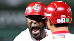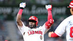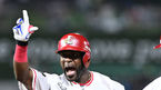 [OSEN=인천, 최규한 기자] 6일 오후 인천 SSG랜더스필드에서 ‘2023 신한은행 SOL KBO리그’ SSG 랜더스와 KIA 타이거즈의 경기가 열렸다.8회말 2사 만루 상황 SSG 에레디아가 추격의 2타점 적시타를 날리고 1루에 안착해 환호하고 있다. 2