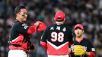 [OSEN=포항, 이석우 기자] 6일 포항야구장에서 2023 신한은행 SOL KBO리그 삼성 라이온즈와 두산 베어스의 경기가 열렸다. 두산 베어스 이승엽 감독이 삼성 라이온즈와의 3연전을 모두 이기고 미소지으며 하이파이브를 하고 있다. 2023