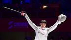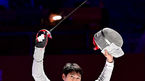 [OSEN=항저우(중국), 최규한 기자] 25일 오후 중국 항저우 전자대학 체육관에서 열린 ‘제19회 항저우 아시안게임’ 남자 사브르 결승 한국 구본길과 오상욱의 경기가 열렸다.승리한 한국 오상욱이 인사를 전하고 있다. 2023.09.25 / d