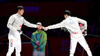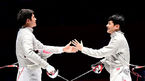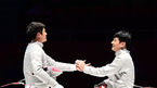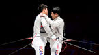 [OSEN=항저우(중국), 최규한 기자] 25일 오후 중국 항저우 전자대학 체육관에서 열린 ‘제19회 항저우 아시안게임’ 남자 사브르 결승 한국 구본길과 오상욱의 경기가 열렸다.승리한 한국 오상욱과 구본길이 인사 나누고 있다. 2023.