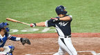 [OSEN=사오싱(중국), 김성락 기자] 7일 오후 중국 저장성 사오싱 야구·소프트볼 스포츠센터 ‘2022 항저우 아시안게임’ 대한민국과 대만의 결승전 경기가 열렸다. 6회초 1사 2루 대한민국 강백호가 안타를 날리고 있다. 2023.10.07 /ks