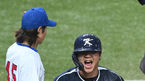[OSEN=사오싱(중국), 김성락 기자] 7일 오후 중국 저장성 사오싱 야구·소프트볼 스포츠센터 ‘2022 항저우 아시안게임’ 대한민국과 대만의 결승전 경기가 열렸다. 2회초 2사 2, 3루 대만 투수 린위민의 폭투 때 3루 주자 김형준이 홈
