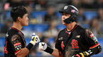 [OSEN=수원, 이대선 기자] 7일 오후 수원 KT위즈파크에서 2023 신한은행 SOL KBO리그 KT 위즈와 한화 이글스의 경기가 열렸다.7회말 2사 1,3루에서 KT 문상철이 좌월 스리런 홈런을 치고 홈에서 배정대의 축하를 받고 있다. 2023.10.07 /sunday