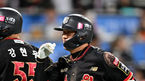 [OSEN=수원, 이대선 기자] 7일 오후 수원 KT위즈파크에서 2023 신한은행 SOL KBO리그 KT 위즈와 한화 이글스의 경기가 열렸다.6회말 무사 1루에서 KT 김상수가 좌월 투런 홈런을 치고 더그아웃에서 동료들과 환호하고 있다. 2023.10.07 /sund