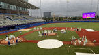 [OSEN=사오싱(중국), 김성락 기자] 7일 오후 중국 저장성 사오싱 야구·소프트볼 스포츠센터 ‘2022 항저우 아시안게임’ 대한민국과 대만의 결승전 경기가 열린다.방수포 덮힌 사오싱 야구 경기장. 2023.10.07 /ksl0919@osen.co.kr
