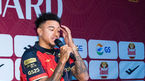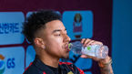 [OSEN=서울월드컵경기장, 민경훈 기자] 8일 오후 서울 마포구 서울월드컵경기장 인터뷰실에서 제시 린가드의 FC서울 입단 기자회견이 진행됐다. 린가드가 FC서울 유니폼을 입고 기자회견을 하며 물을 마시고 있다. 2024.02.08 / rumi@ose