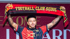 [OSEN=서울월드컵경기장, 민경훈 기자] 8일 오후 서울 마포구 서울월드컵경기장 인터뷰실에서 제시 린가드의 FC서울 입단 기자회견이 진행됐다. 린가드가 FC서울 유니폼을 입고 포토타임을 갖고 있다. 2024.02.08 / rumi@osen.co.kr