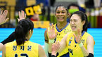 [OSEN=수원, 지형준 기자] 22일 오후 수원체육관에서 도드람 2023-2024 V리그 여자부 현대건설과 IBK기업은행의 경기가 열렸다.1세트 IBK기업은행 황민경이 블로킹 득점에 표승주와 기뻐하고 있다. 2024.02.22 / jpnews.osen.co.kr