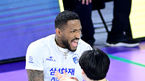 [OSEN=인천, 최규한 기자] 23일 오후 인천 계양체육관에서 ‘도드람 2023-2024 V리그’ 남자부 대한항공과 삼성화재의 경기가 열렸다.2세트, 삼성화재 요스바니가 득점에 기뻐하고 있다. 2024.02.23 / dreamer@osen.co.kr