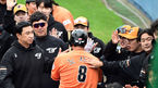 [OSEN=오키나와(일본), 조은정 기자] 26일 일본 오키나와 온나손 아카마 구장에서 삼성 라이온즈와 한화 이글스의 연습경기가 열렸다.1회초 2사 1루 한화 노시환이 선취 2점 홈런을 날린 뒤 축하를 받고 있다. 2024.02.26 /cej@osen.co.kr
