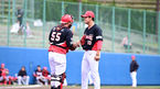 [OSEN=오키나와(일본), 조은정 기자] 27일 일본 오키나와 우라소에 ANA 볼파크에서 KIA 타이거즈와 일본프로야구 야쿠르트 스왈로스와 연습경기가 열렸다.6회말 1사 만루가 되자 포수 한준수가 마운드에 올려 유승철을 다독이고 있