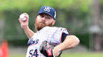 [OSEN=오키나와(일본), 조은정 기자] 27일 일본 오키나와 오라소에 ANA 볼파크에서 KIA 타이거즈와 일본프로야구 야쿠르트 스왈로스와 연습경기가 열렸다.1회초 야쿠르트 선발 사이 스니드가 힘차게 공을 던지고 있다. 2024.02.27 /cej@