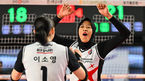 [OSEN=김천, 이석우 기자] 27일 김천실내체육관에서 도드람 2023-2024 V리그 한국도로공사와 정관장의 경기가 열렸다. 정관장 지아와 선수들이 3세트도 리드하면서 기뻐하고 있다. 2024.02.27 / foto0307@osen.co.kr