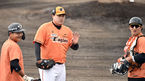 [OSEN=오키나와(일본), 조은정 기자]2일 일본 오키나와 고친다구장에서 한화이글스의 스프링캠프 훈련이 진행됐다.한화 류현진이 최원호 감독과 박승민 투수 코치가 지켜보는 가운데 라이브 피칭을 하고 있다. 2024.03.02 /cej@osen.co.k