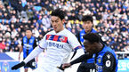 [OSEN=인천, 지형준 기자] 2일 오후 인천축구전용경기장에서 하나은행 K리그1 2024 1라운드 인천 유나이티드와 수원FC의 경기가 열렸다.후반 수원FC 지동원이 인천 김동민의 수비를 피해 드리블을 하고 있다. 2024.03.02 /jpnews@osen.co.kr