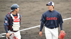 [OSEN=오키나와(일본), 조은정 기자]2일 일본 오키나와 구시카와 구장에서 롯데 자이언츠와 한화이글스의 스프링캠프 연습게임이 열렸다.7회초 이닝을 마친 롯데 손성빈, 최이준이 대화를 나누며 더그아웃으로 향하고 있다. 2024.0