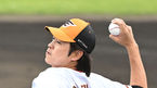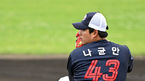[OSEN=오키나와(일본), 조은정 기자]2일 일본 오키나와 구시카와 구장에서 롯데 자이언츠와 한화이글스의 스프링캠프 연습게임이 열렸다.5회초 2사 1루 롯데 나균안이 한화 안치홍에게 안타를 내준 뒤 미소를 짓고 있다. 2024.03.02 /c